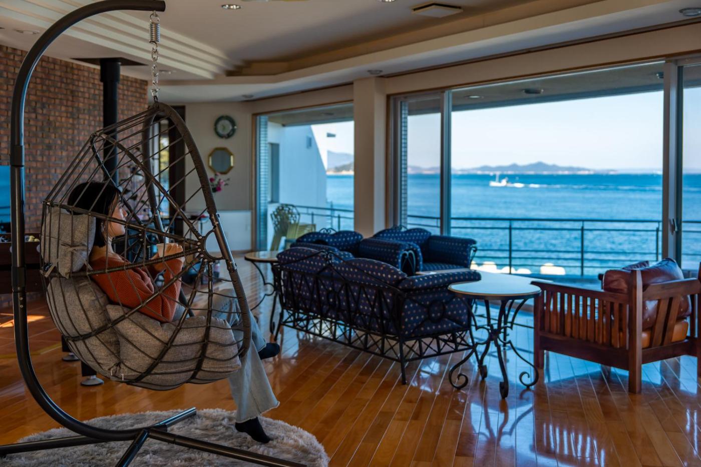 Two-Bedroom House. Guests will have a special experience as this holiday home features a fireplace. Featuring a private entrance, this spacious holiday home also comprises 2 separate bedrooms and 1 bathroom with a bath and a shower. Guests will find a refrigerator, kitchenware, an oven and a microwave in the fully equipped kitchen. The holiday home also provides guests with a barbecue. The air-conditioned holiday home provides a flat-screen TV with streaming services, a washing machine, tatami, a dining area as well as sea views. The unit offers 2 beds and 4 futons.