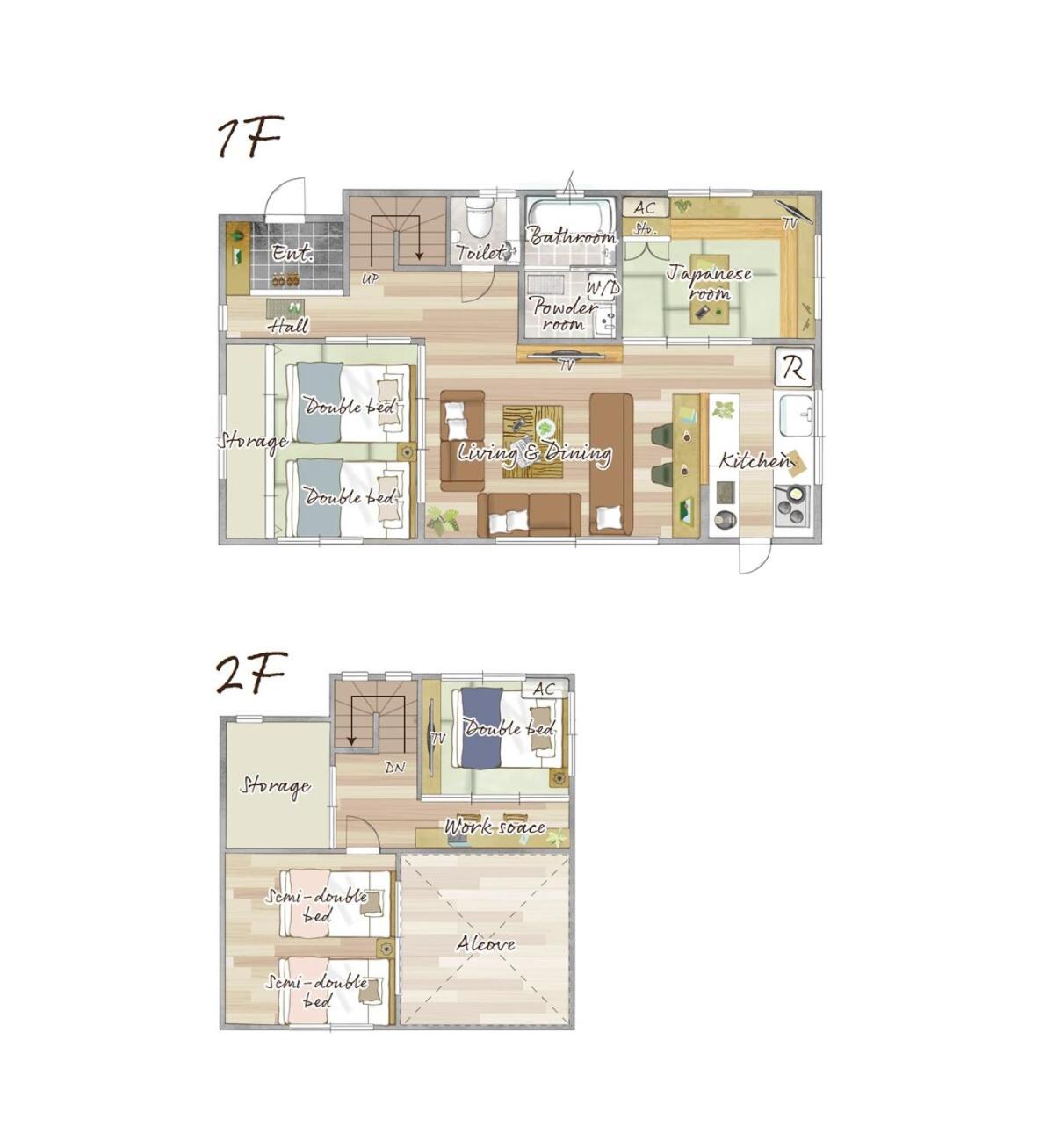 Three-Bedroom Apartment. This spacious apartment comes with 3 bedrooms, a kitchen and 1 bathroom with a bath and a bidet. Guests can make meals in the kitchen that features a stovetop, a refrigerator, kitchenware and a microwave. The air-conditioned apartment features a flat-screen TV, a washing machine, tatami and a dining area. The unit has 5 beds.
