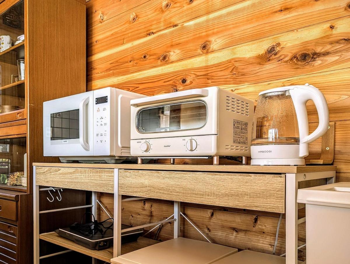 Three-Bedroom House. Featuring a private entrance, this air-conditioned holiday home comprises 1 living room, 3 separate bedrooms and 1 bathroom with a bath and a shower. The well-fitted kitchen features a refrigerator, kitchenware, a microwave and a toaster. The spacious holiday home provides a flat-screen TV with streaming services, a washing machine, tatami, a tea and coffee maker as well as garden views. The unit offers 2 beds and 6 futons.