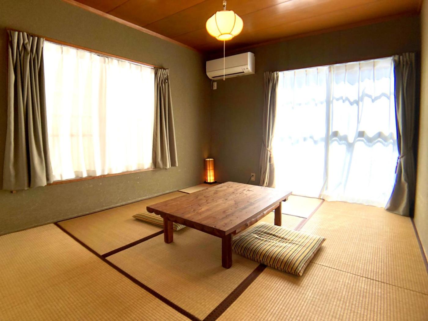 Two-Bedroom House. Boasting a private entrance, this air-conditioned holiday home comes with 2 living rooms, 2 separate bedrooms and 1 bathroom with a bath and a shower. Guests can make meals in the kitchen that features a stovetop, a refrigerator, kitchenware and a microwave. The holiday home has tatami floors, a seating area with a flat-screen TV with streaming services, a washing machine, a minibar, as well as a tea and coffee maker. The unit has 7 futons.