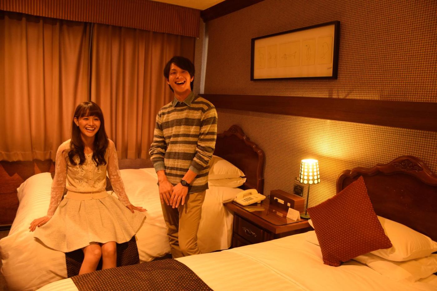 Twin Room - Smoking. This air-conditioned room includes a flat-screen satellite TV, a refrigerator, and a work desk. The bathroom includes slippers and a hairdryer. ;