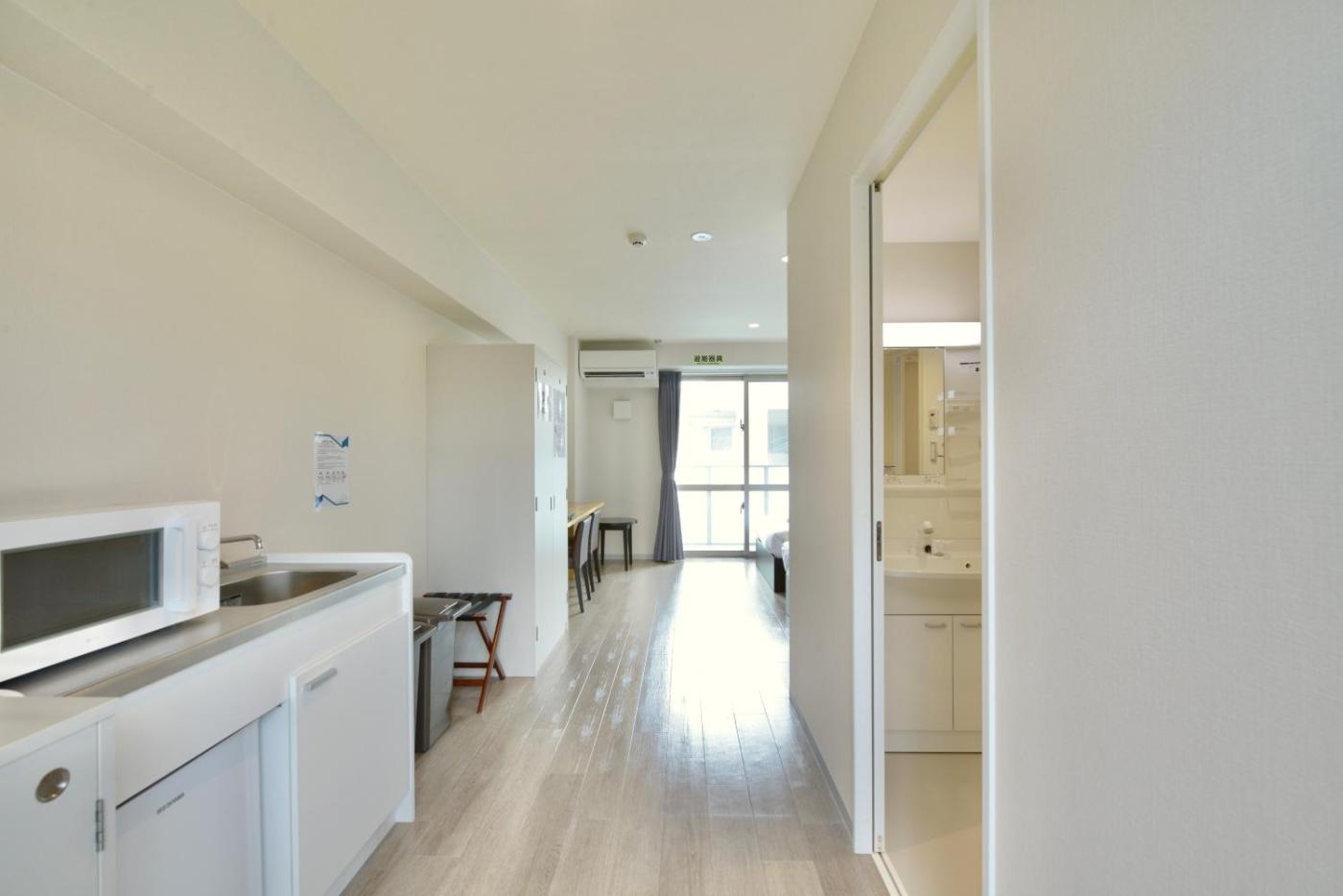 One-Bedroom Premium Apartment. Featuring a private entrance, this air-conditioned apartment consists of a kitchen, 1 bedroom and 1 bathroom with a bath and a shower. Guests can make meals in the kitchen that is equipped with a stovetop, a refrigerator, kitchenware and a microwave. Boasting a balcony, this apartment also provides an electric kettle, heating and a TV. The unit offers 2 beds.