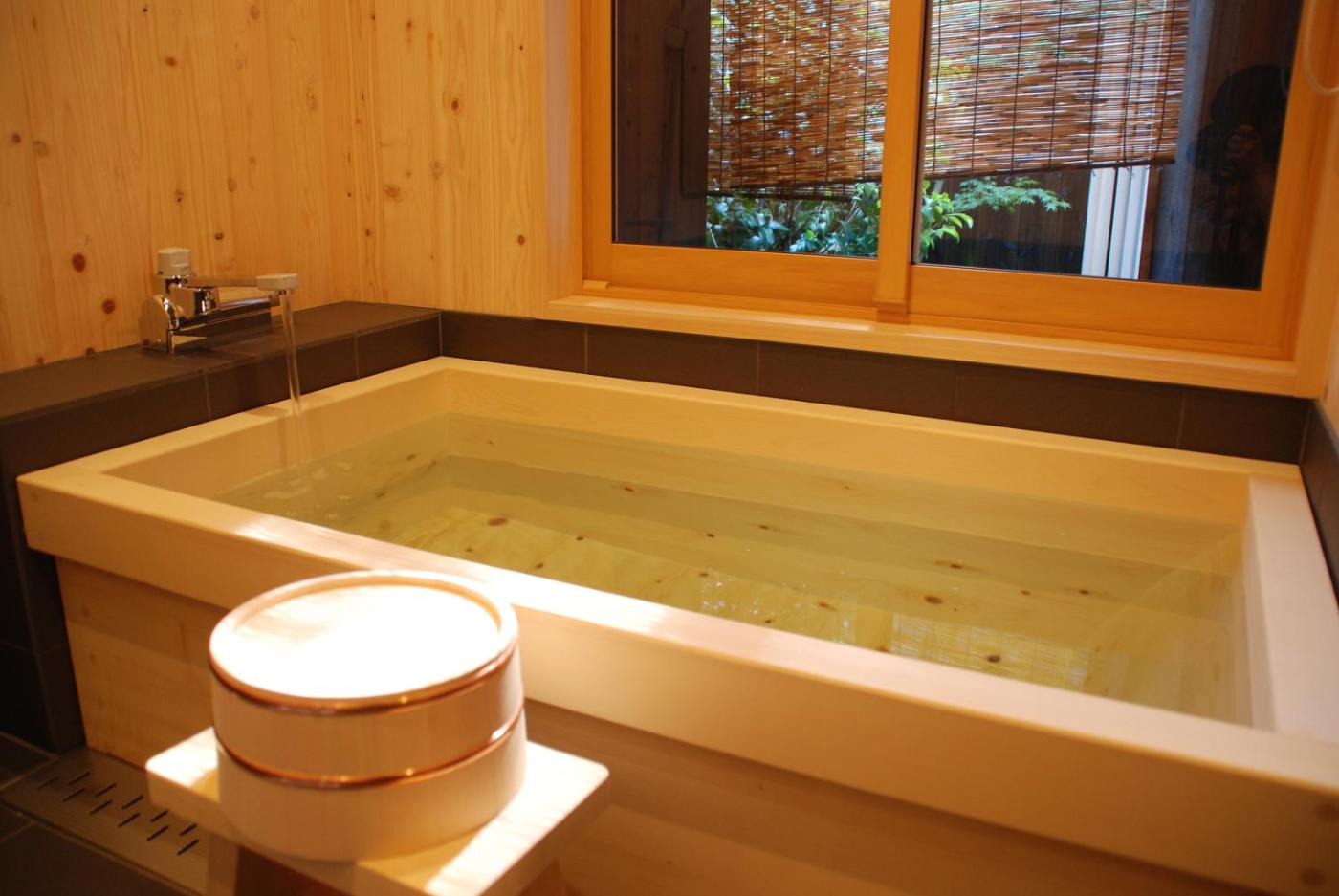 Japanese-Style Town House. This holiday home offers a private open-air bath. Providing free toiletries and bathrobes, this holiday home includes a private bathroom with a bath, a shower and a bidet. The fully equipped kitchenette features a refrigerator, kitchenware and a microwave. The air-conditioned holiday home provides a flat-screen TV, a washing machine, tatami, a tea and coffee maker as well as ancourtyard view. The unit offers 2 beds and 4 futons.