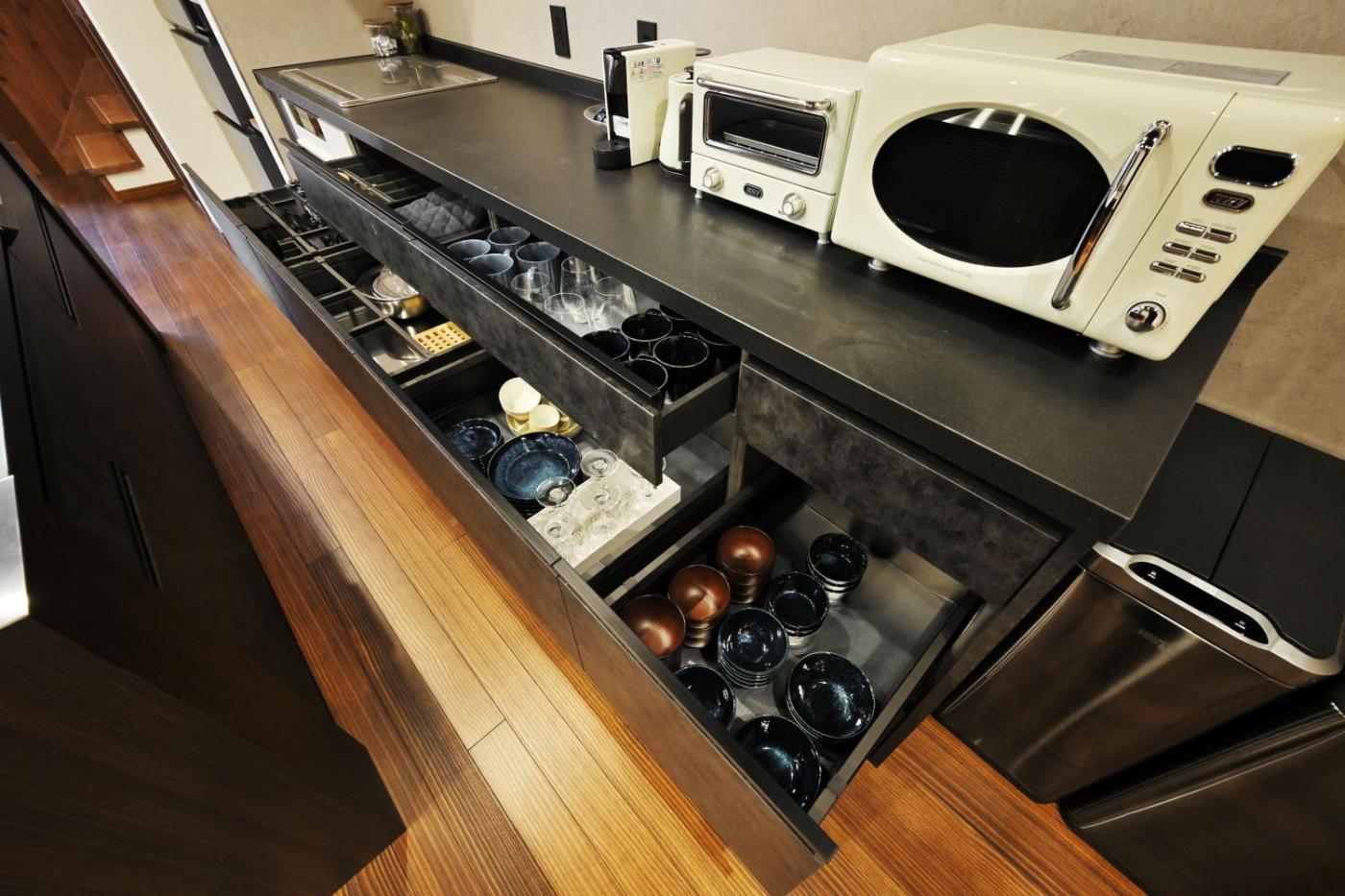 Three-Bedroom Villa. This air-conditioned villa comprises 1 living room, 3 separate bedrooms and 2 bathrooms with a bath. The well-fitted kitchen has a stovetop, a refrigerator, a dishwasher and kitchenware. The villa features a washing machine, tatami, a tea and coffee maker as well as a terrace with garden views. The unit offers 3 beds and 4 futons.