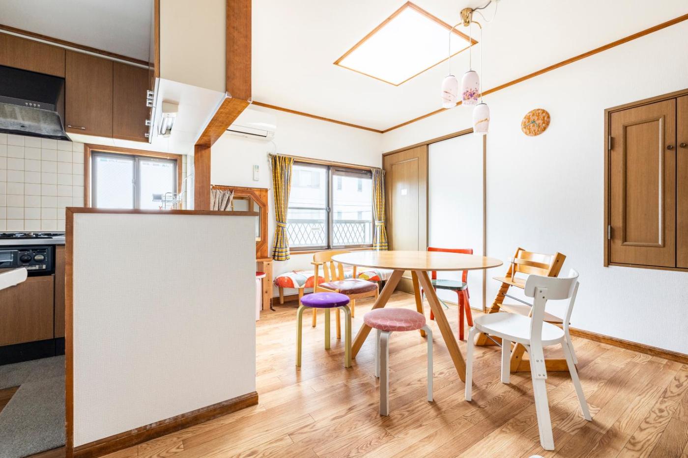 Two-Bedroom House. Featuring a private entrance, this air-conditioned holiday home consists of 1 living room, 2 separate bedrooms and 1 bathroom with a bath and a shower. The fully equipped kitchen features a stovetop, a refrigerator, kitchenware and a microwave. The holiday home provides a washing machine, tatami, a coffee machine as well as a terrace with a quiet street view. The unit offers 3 beds and 4 futons.