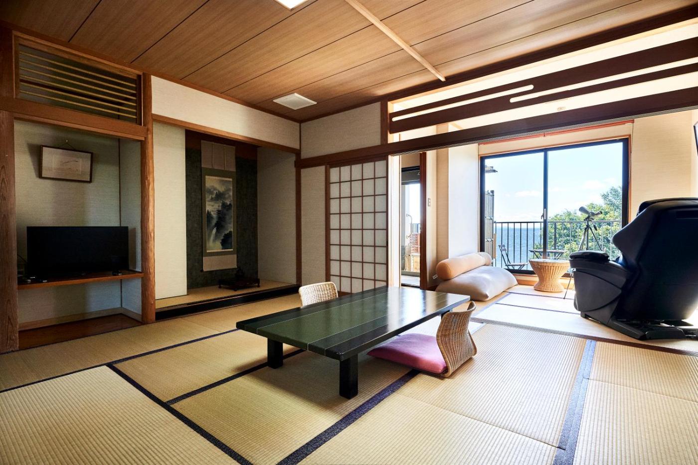 Japanese-Style Room with Open-Air Bath - Breakfast and Dinner Included. This triple rooms standout feature is the private open-air bath. This air-conditioned triple room is comprised of a flat-screen TV with satellite channels, a private bathroom as well as a balcony with lake views. The unit has 2 futons.