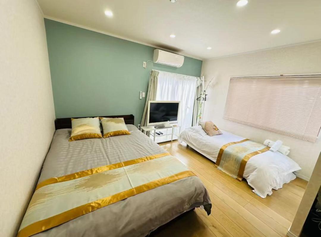 One-Bedroom Apartment. The air-conditioned apartment has 1 bedroom and 1 bathroom with a walk-in shower and a hairdryer. Guests will find a stovetop, a refrigerator, kitchenware and a microwave in the well-fitted kitchen. The apartment also comes with a barbecue. This apartment features a washing machine, tatami, a TV and a patio. The unit has 2 beds and 1 futon.