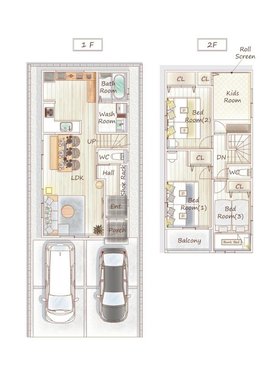 Three-Bedroom House. This air-conditioned holiday home comes with 1 living room, 3 separate bedrooms and 1 bathroom with a bath. The holiday homes kitchen is available for cooking and storing food. This holiday home has a washing machine, heating, a flat-screen TV and a balcony. The unit has 5 beds and 2 futons.