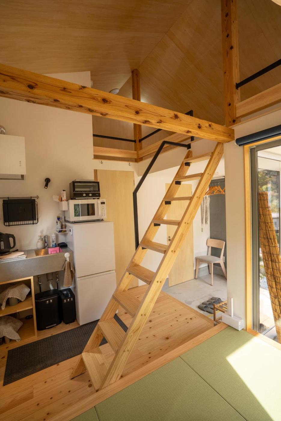 Studio with Terrace. This suite provides a sauna. This suite comprises 1 living room, 1 separate bedroom and 1 bathroom with a walk-in shower and free toiletries. Meals can be prepared in the kitchenette, which comes with a refrigerator, kitchenware, a microwave and a tea and coffee maker. The suite features air conditioning, a washing machine, tatami as well as a terrace with mountain views. The unit offers 1 bed and 2 futons. ;