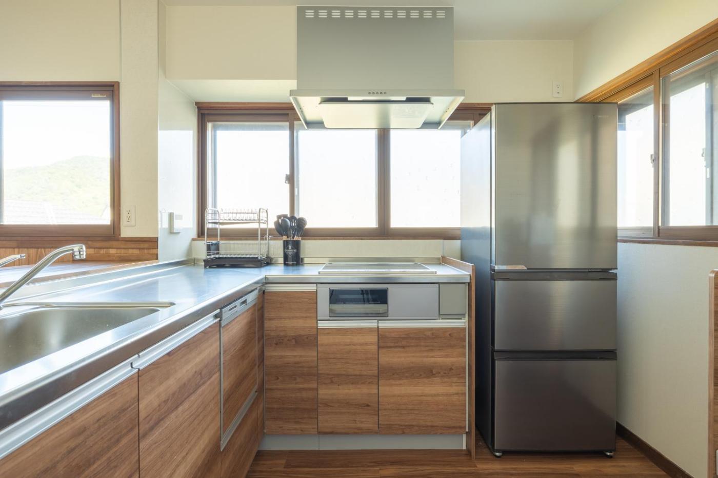 Five-Bedroom House. The hot tub is the standout feature of this holiday home. This spacious holiday home comes with 1 living room, 5 separate bedrooms and 3 bathrooms with a bath and a shower. The fully equipped kitchen features a stovetop, a refrigerator, a dishwasher and a microwave. The holiday home has tatami floors, a seating area with a TV, a washing machine, a private entrance, as well as a tea and coffee maker. The unit has 11 beds and 4 futons.