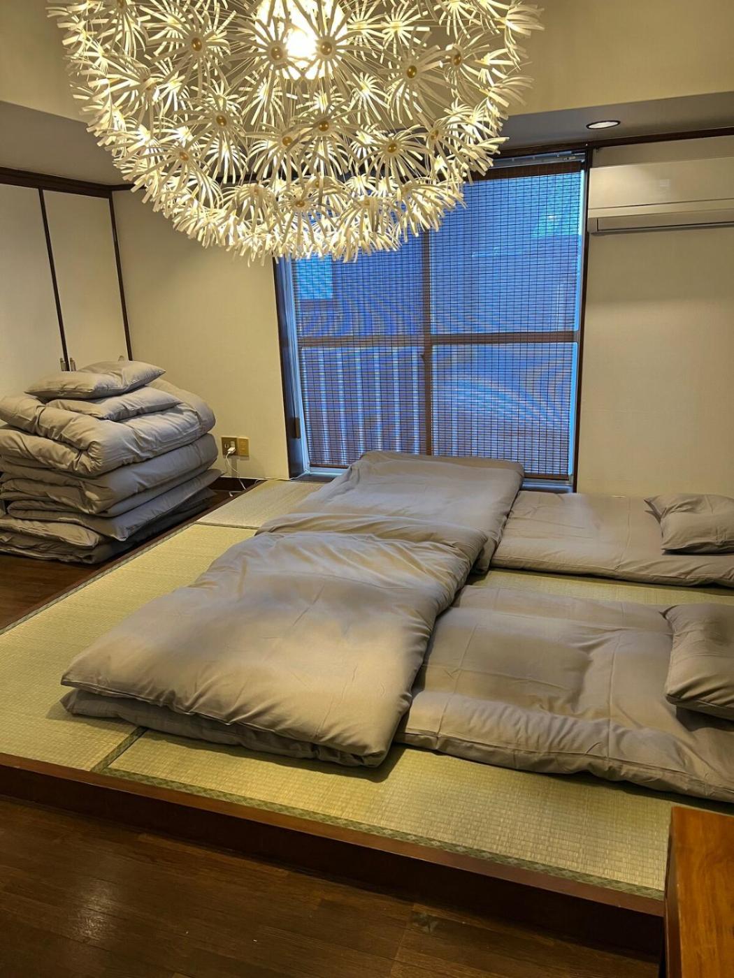 Three-Bedroom Apartment. Featuring a private entrance, this spacious apartment also comprises 1 separate bedroom and 1 bathroom with a bath and a bidet. Meals can be prepared in the kitchen, which comes with a stovetop, a refrigerator, kitchenware and a microwave. The air-conditioned apartment provides a flat-screen TV with streaming services, a washing machine, tatami, a dining area as well as a quiet street view. The unit offers 2 beds.