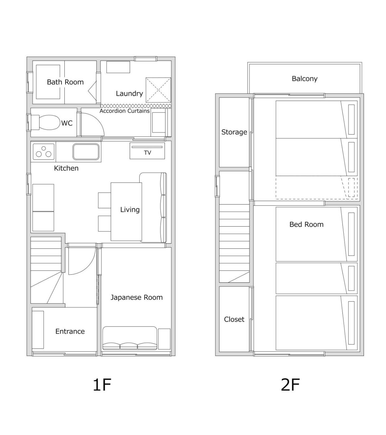 Holiday Home. Featuring a private entrance, this air-conditioned holiday home consists of 1 living room, 1 separate bedroom and 1 bathroom with a bath and a shower. Guests can make meals in the kitchen that is equipped with a stovetop, a refrigerator, kitchenware and a microwave. Boasting a balcony, this holiday home also provides a washing machine, tatami and a flat-screen TV. The unit offers 4 beds and 2 futons.