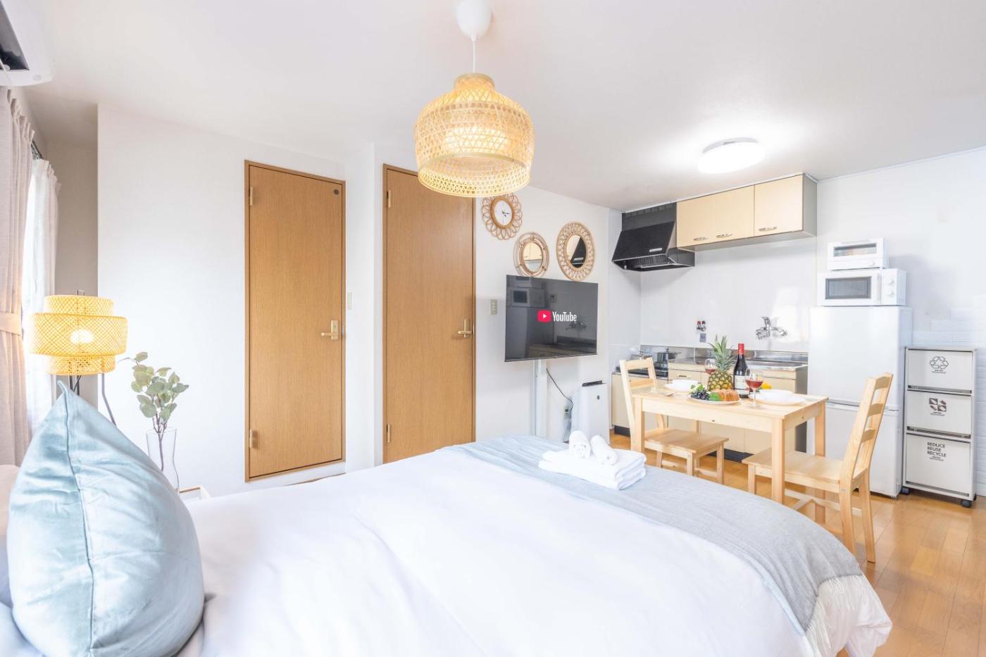 In the centre of Osaka, located within a short distance of Orange Street and Manpuku-ji Temple, アリタハイツ難波411 offers free WiFi, air conditioning and household amenities such as a fridge and coffee machine. It is situated less than 1 km from Glico Man Sign and provides a lift. The property is non-smoking and is800 metres from Motomachinaka Park.