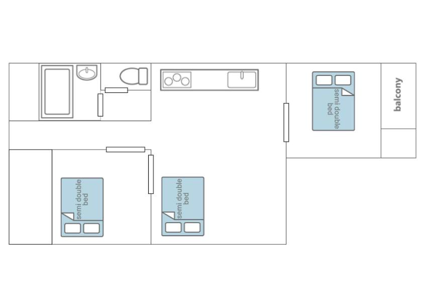 Three-Bedroom Apartment. The air-conditioned apartment features 3 bedrooms, 1 bathroom with a hairdryer and a kitchen. Meals can be prepared in the kitchen, which is equipped with a refrigerator and a microwave. This apartment has a washing machine, a high chair for children, a flat-screen TV with cable channels and a balcony. The unit offers 3 beds and 2 futons.