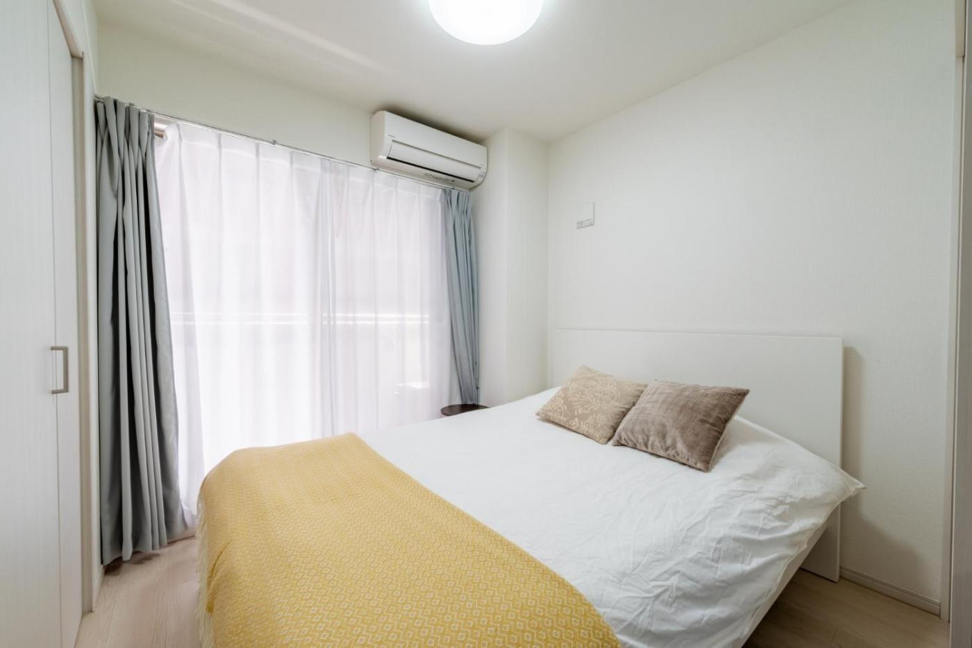 One-Bedroom Apartment. Featuring a private entrance, this air-conditioned apartment comprises 1 living room, 1 separate bedroom and 1 bathroom with a bath and a shower. Meals can be prepared in the well-fitted kitchen, which comes with a stovetop, a refrigerator, a microwave and an electric kettle. Boasting a balcony with city views, this apartment also provides a washing machine and a flat-screen TV with streaming services. The unit offers 2 beds.