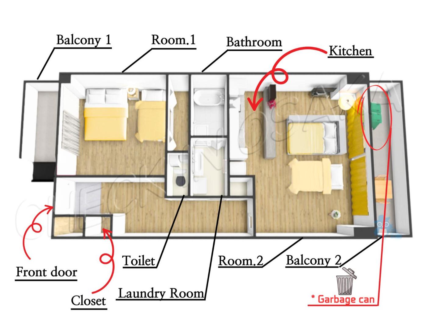 G9 ll 특별가격 전철역 도보3분 번화가의 조용한 2룸 아파트 그린과 옐로우의 산뜻