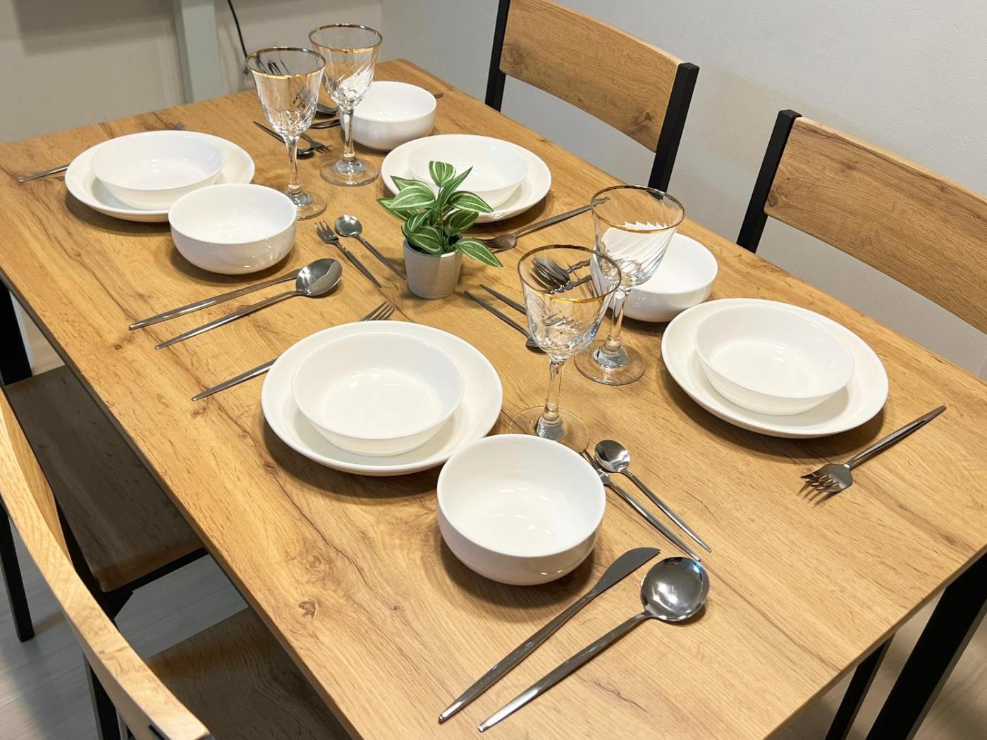 Two-Bedroom Apartment. The air-conditioned apartment features 2 bedrooms and 1 bathroom with a bath and a shower. Meals can be prepared in the kitchen, which comes with a stovetop, a refrigerator, kitchenware and a microwave. The apartment offers a washing machine, a dining area, a wardrobe, an electric kettle and a flat-screen TV. The unit offers 2 beds. ;
