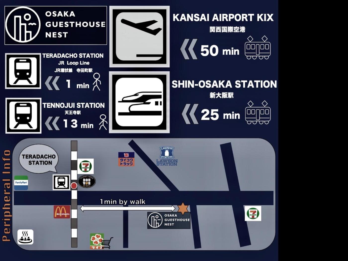 Located a minutes walk from JR Teradacho Station on the Osaka Loop Line, Osaka Guesthouse Nest features simple guest rooms with wooden decor. Shin-Osaka Station is a 25-minute train ride, while Kansai International Airport is a 50-minute train ride or drive away. Osaka Castle and Dotonbori are 10 minutes by train from the property.