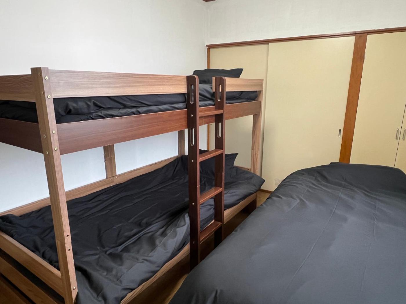 Three-Bedroom Apartment. This spacious apartment comes with 1 living room, 3 separate bedrooms and 1 bathroom with a bath and a hairdryer. Guests can make meals in the kitchen that features a stovetop, a refrigerator, kitchenware and a microwave. This apartment is air-conditioned and has a flat-screen TV, a washing machine, tatami and a dining area. The unit has 4 beds and 3 futons. ;
