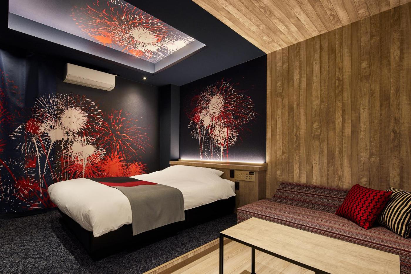 At the love hotel, each room comes with air conditioning and a flat-screen TV.