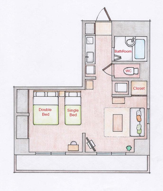 One-Bedroom Apartment - Non-Smoking. This apartment consists of 1 living room, 1 separate bedroom and 1 bathroom with a bath and free toiletries. Meals can be prepared in the well-fitted kitchen, which is equipped with a stovetop, a refrigerator, kitchenware and a microwave. The air-conditioned apartment provides a flat-screen TV, a washing machine, a tea and coffee maker, tumble dryer as well as city views. The unit offers 3 beds.