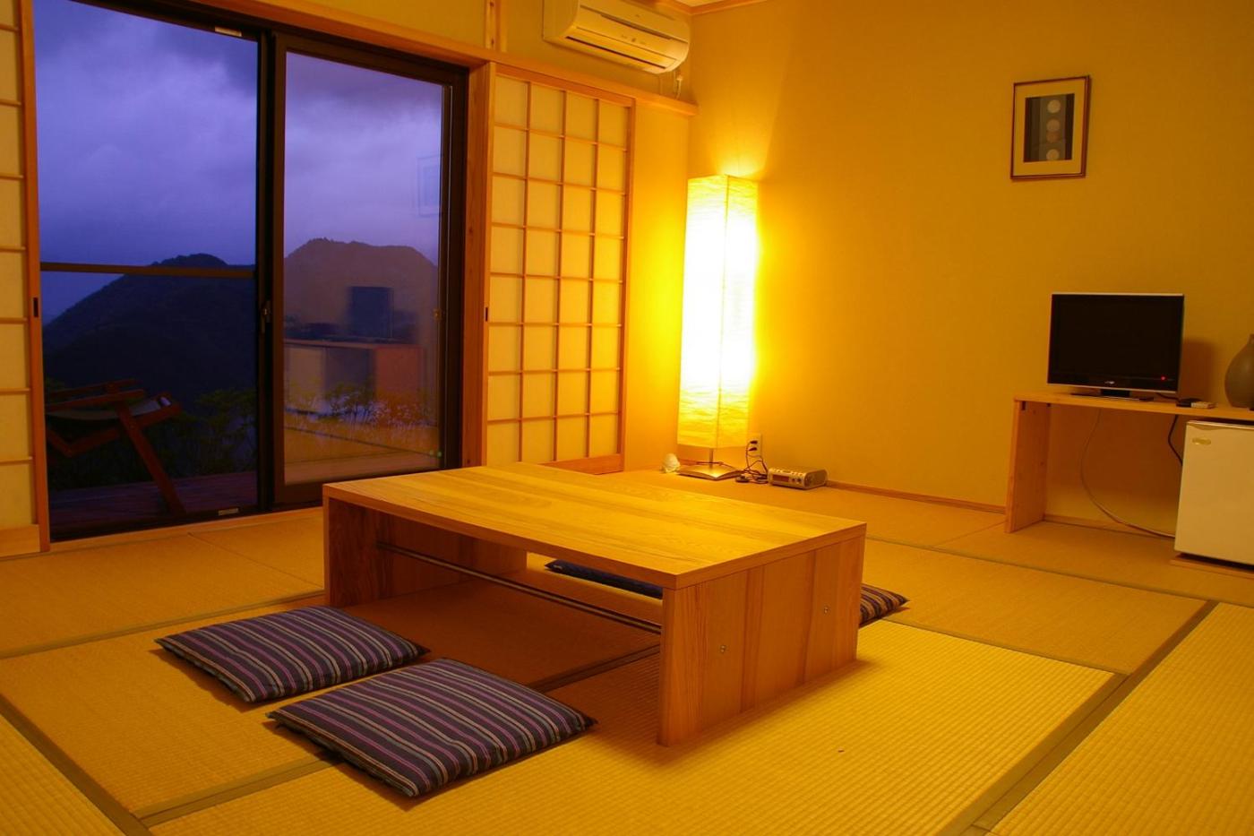 Superior Japanese-Style Room. The family room provides air conditioning, tatami, a terrace with mountain views as well as a shared bathroom featuring a bidet. The unit offers 10 futons.