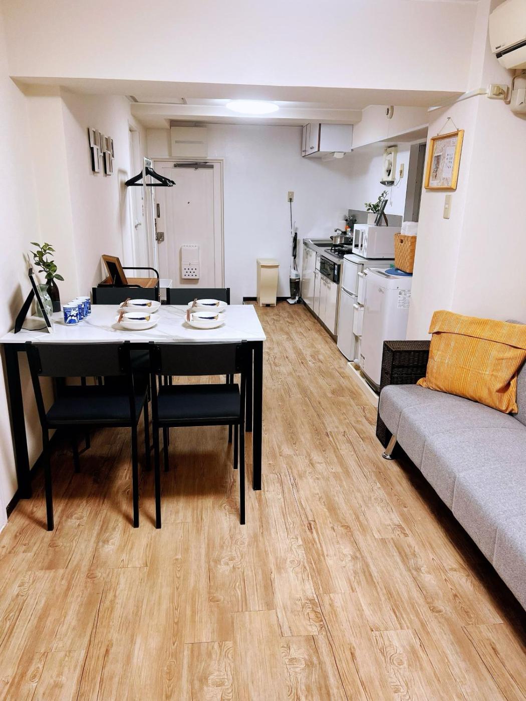 One-Bedroom Apartment. This apartment comes with 1 living room, 1 separate bedroom and 1 bathroom with a bath and free toiletries. The well-equipped kitchen has a stovetop, a refrigerator, kitchenware and a microwave. The air-conditioned apartment features a flat-screen TV, a washing machine, tatami, a seating area as well as city views. The unit has 3 beds.