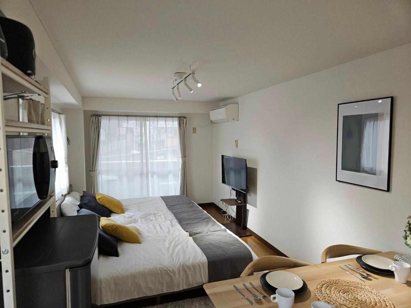 One-Bedroom Apartment. The air-conditioned apartment features 1 bedroom and 1 bathroom with a bath and a shower. Meals can be prepared in the well-fitted kitchen, which is fitted with a refrigerator, a microwave and an electric kettle. Featuring a balcony, this apartment also offers a washing machine, a dining area and a flat-screen TV. The unit offers 2 beds.