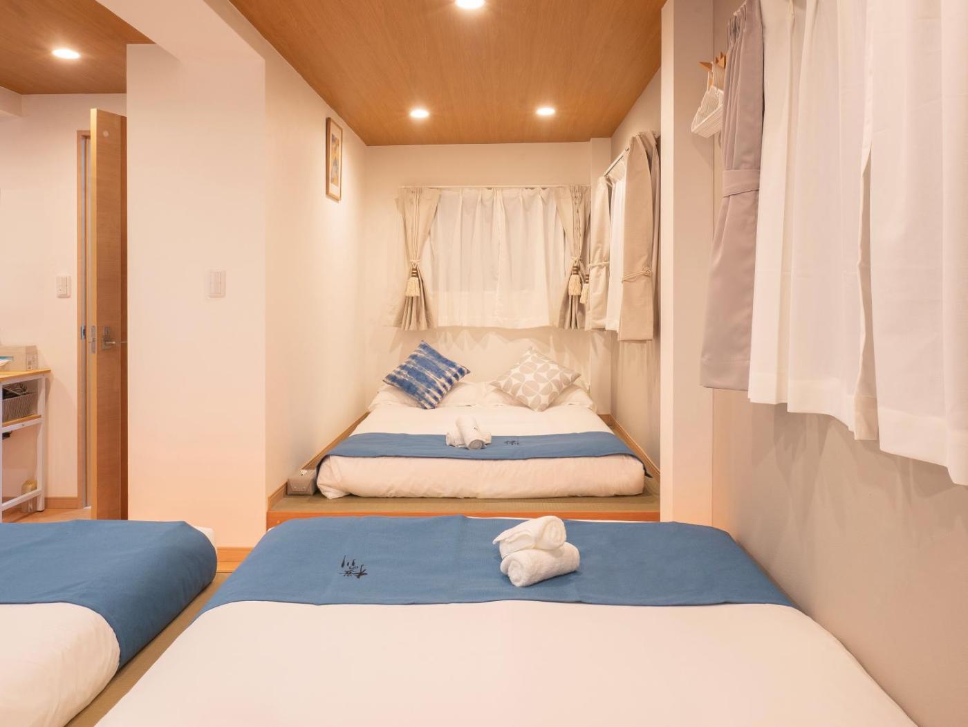 One-Bedroom Apartment. Featuring a private entrance, this air-conditioned apartment comprises a kitchen, 1 bedroom and 1 bathroom with a shower and a hairdryer. In the well-equipped kitchen, guests will find a stovetop, a refrigerator, kitchenware and a microwave. The apartment provides a washing machine, tatami, an electric kettle, parquet floors, as well as a flat-screen TV. The unit offers 3 futons.