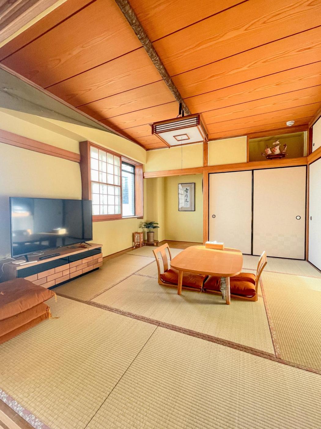 Deluxe Double Room. Guests will have a special experience as the double room offers a hot tub. The spacious double room provides air conditioning, a washing machine, as well as a private bathroom featuring a bath and a shower. In the well-fitted kitchen, guests will find a stovetop, a refrigerator, a dishwasher and kitchenware. Boasting a terrace, this double room also features tatami, a tea and coffee maker and a flat-screen TV. The unit offers 3 beds and 4 futons.