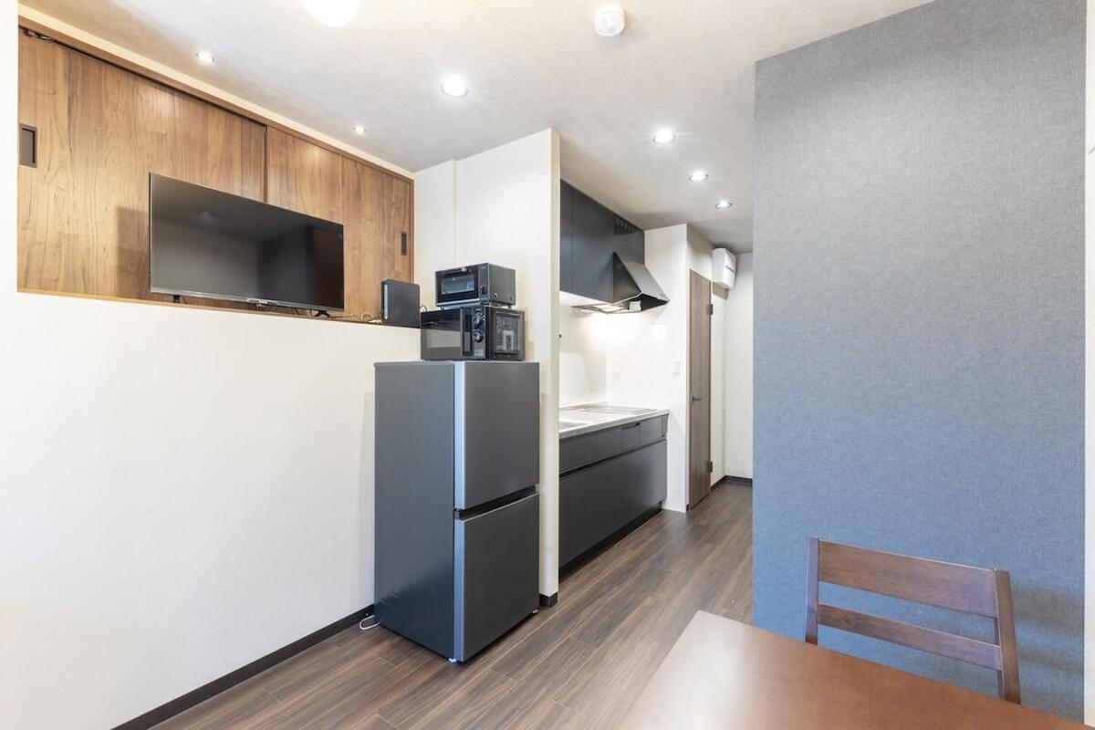 Two-Bedroom Apartment. Boasting a private entrance, this air-conditioned apartment features 1 living room, 2 separate bedrooms and 1 bathroom with a bath and a shower. Meals can be prepared in the kitchen, which has a stovetop, a refrigerator, a microwave and a toaster. The apartment features a flat-screen TV with streaming services, a washing machine, tatami, a coffee machine as well as a quiet street view. The unit has 3 beds and 1 futon.