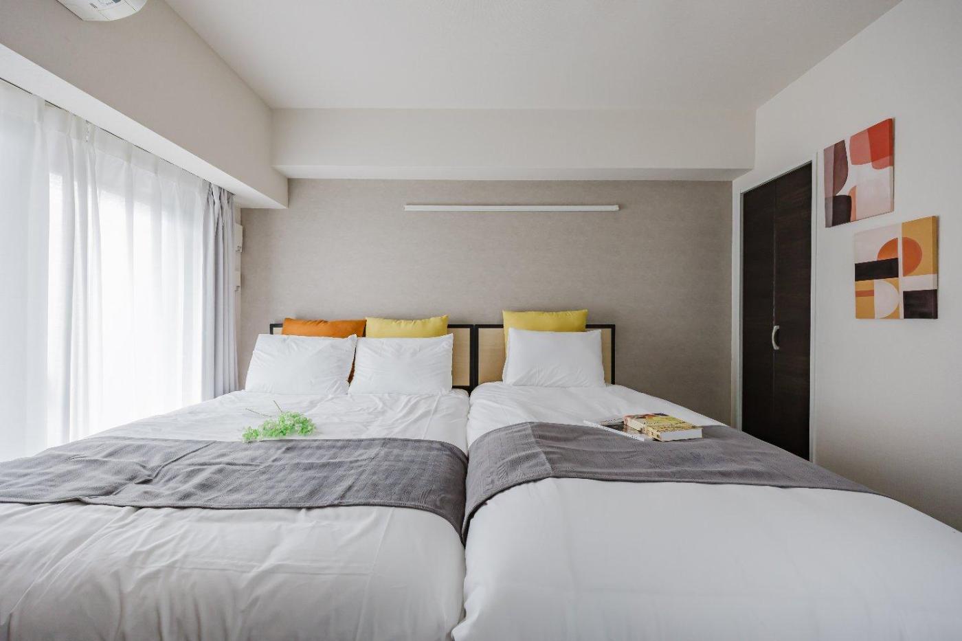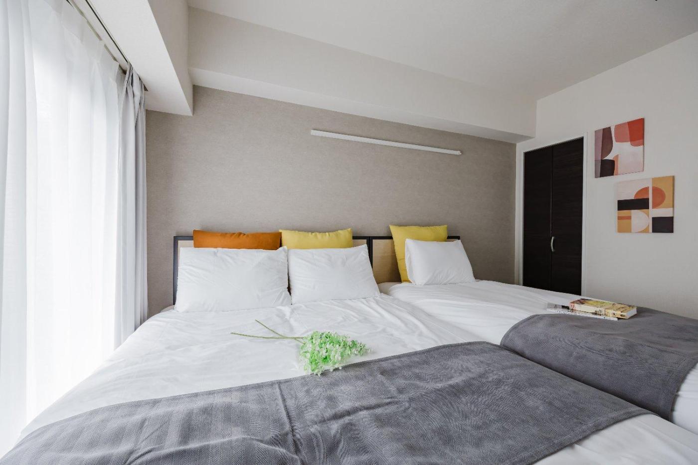 Two-Bedroom Apartment. The air-conditioned apartment has 2 bedrooms and 1 bathroom with a bath and a shower. Guests can make meals in the kitchen that features a stovetop, a refrigerator, kitchenware and a microwave. The apartment features a washing machine, a wardrobe, an electric kettle, as well as a balcony. The unit has 2 beds and 1 futon. ;