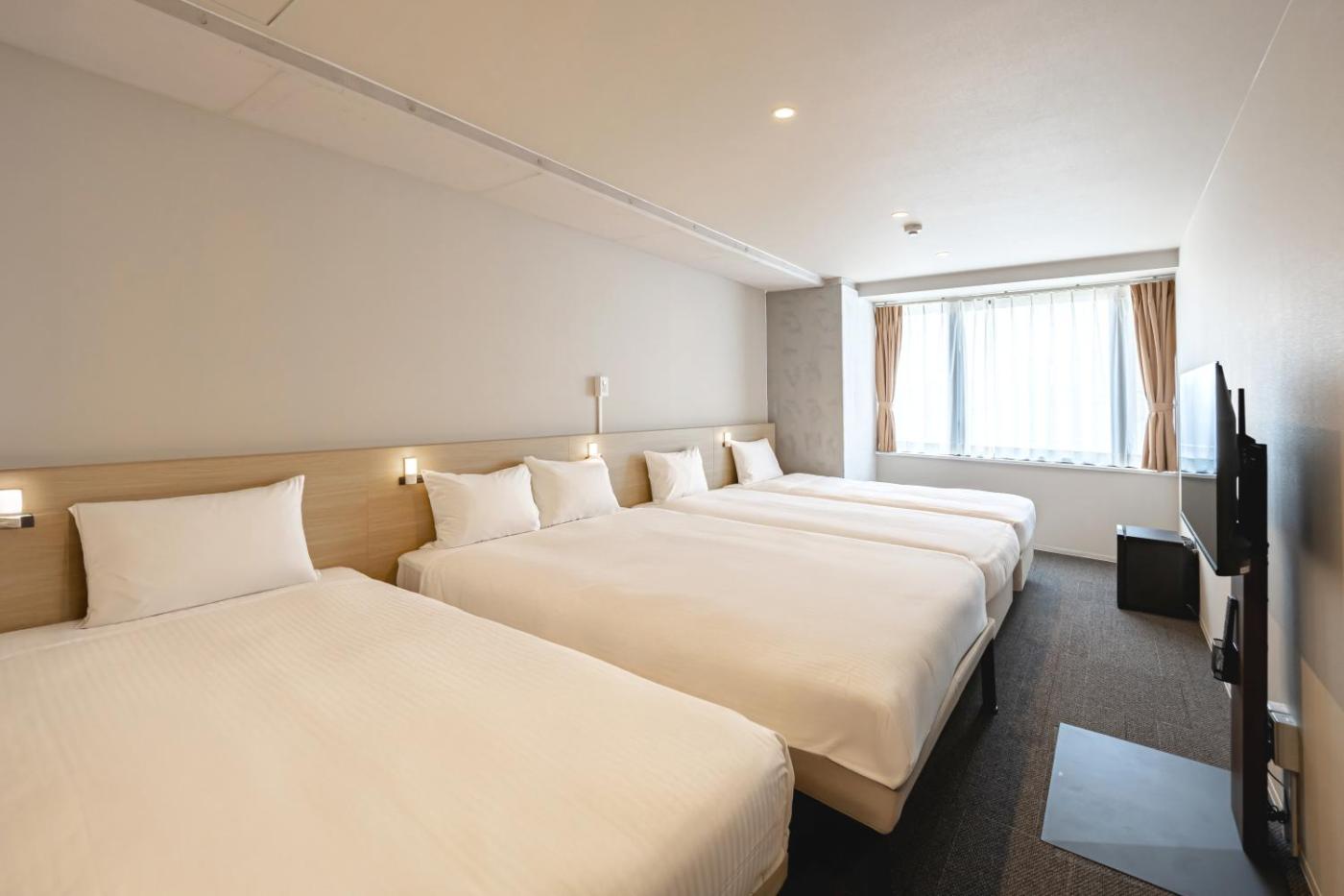 Japanese-Style Quadruple Room. The quadruple room provides air conditioning, tatami, as well as a private bathroom featuring a shower and a bidet. Rooms on the upper floors are reachable by lift. The unit offers 4 futons. ;
