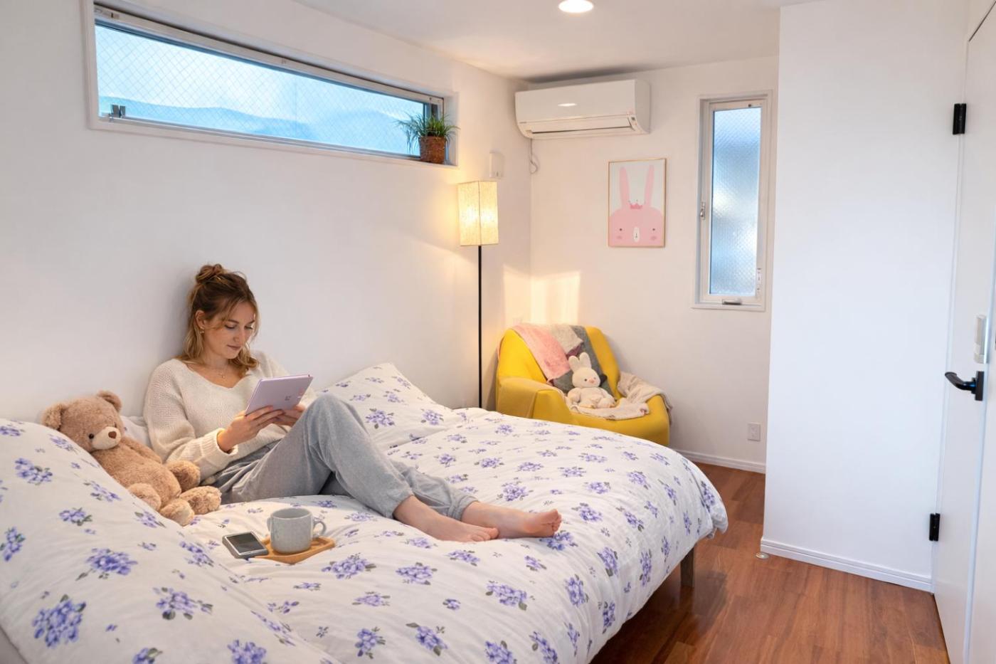 Three-Bedroom Villa. This villas standout feature is the hot tub. This villa is comprised of 1 living room, 3 separate bedrooms and 1 bathroom with a bath and free toiletries. Guests can make meals in the kitchen that is fitted with a stovetop, a refrigerator, a dishwasher and kitchenware. The air-conditioned villa offers a flat-screen TV with streaming services, a washing machine, tatami, soundproof walls as well as city views. The unit offers 5 beds and 1 futon.