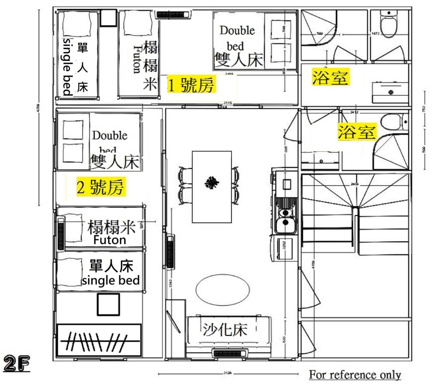 Second Floor Tow-Bedroom Apartment. This spacious apartment consists of 1 living room, 2 separate bedrooms and 2 bathrooms with a walk-in shower and free toiletries. In the well-fitted kitchen, guests will find a refrigerator, kitchenware, a microwave and an electric kettle. The air-conditioned apartment provides a flat-screen TV, tatami, a private entrance, soundproof walls as well as city views. The unit offers 4 beds and 2 futons. ;