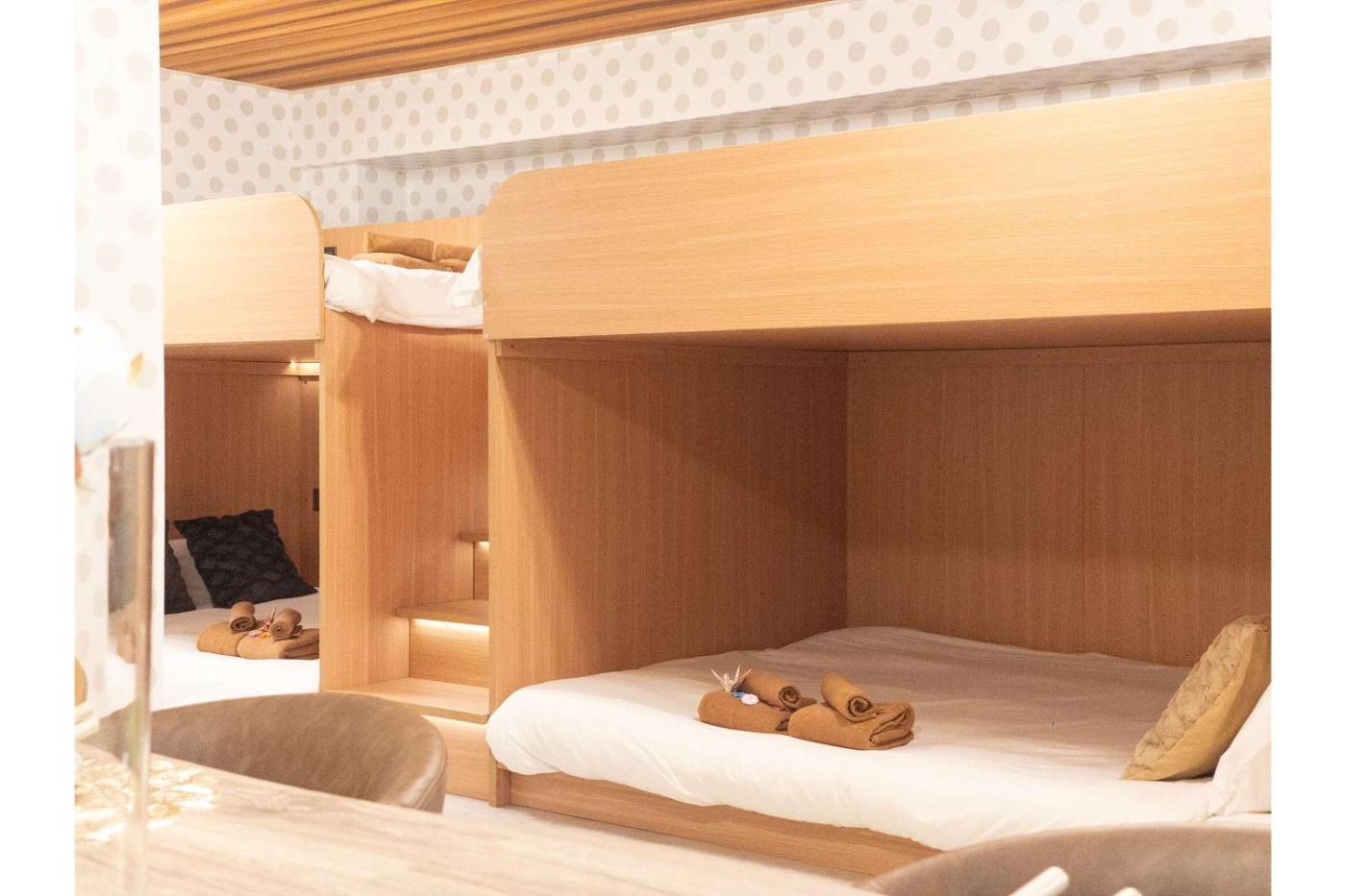 Room #1582907505. The spacious family room offers air conditioning, a washing machine, as well as a private bathroom featuring a shower and a bidet. Guests can make meals in the kitchen that is fitted with a refrigerator, kitchenware, a microwave and an electric kettle. This family room features a dining area, heating and a flat-screen TV. The unit offers 1 bed. ;