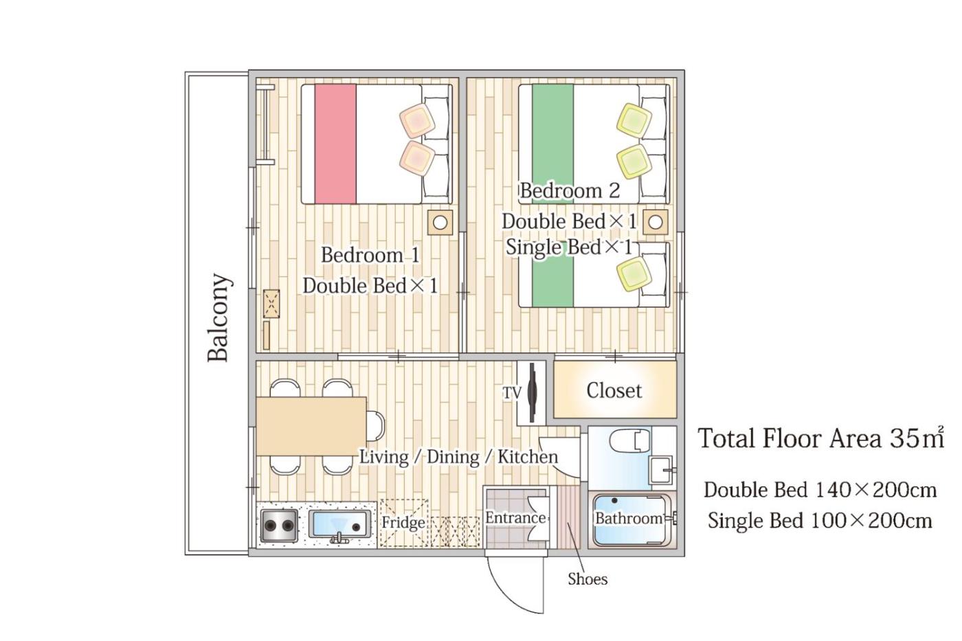 Two-Bedroom Apartment. Boasting a private entrance, this air-conditioned apartment includes 1 living room, 2 separate bedrooms and 1 bathroom with a shower and a hairdryer. In the kitchen, guests will find a stovetop, a refrigerator, kitchenware and a microwave. The apartment offers a flat-screen TV, a dining area, an electric kettle, heating as well as a quiet street view. The unit has 3 beds.