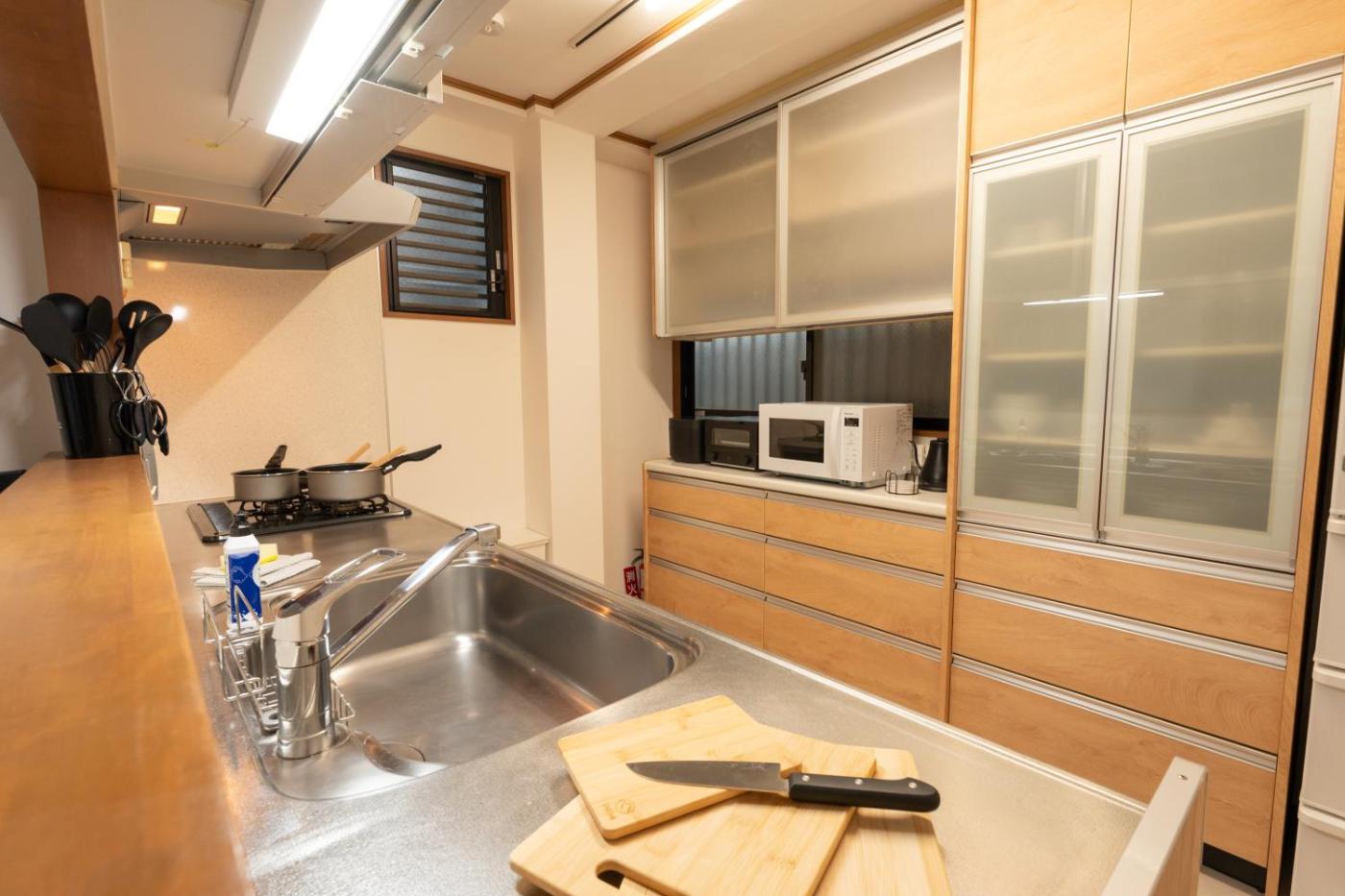 Three-Bedroom Apartment Suite. This apartment consists of 1 living room, 3 separate bedrooms and 1 bathroom with a bath and free toiletries. Guests can make meals in the kitchen that is equipped with a refrigerator, kitchenware, a microwave and a tea and coffee maker. The air-conditioned apartment provides a flat-screen TV, a washing machine, tatami, a minibar as well as a quiet street view. The unit offers 4 beds.