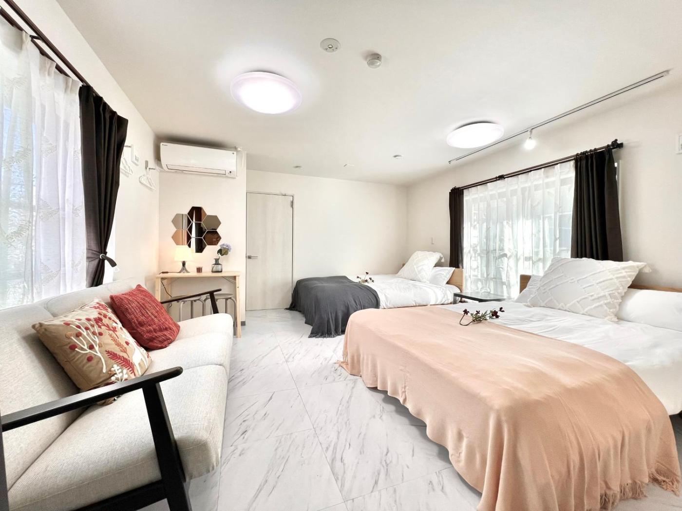 Three-Bedroom Apartment. The fully equipped kitchen has a stovetop, a refrigerator, kitchenware and a microwave. The air-conditioned apartment features a flat-screen TV, a washing machine, soundproof walls, a dining area as well as a quiet street view. The unit has 3 beds.