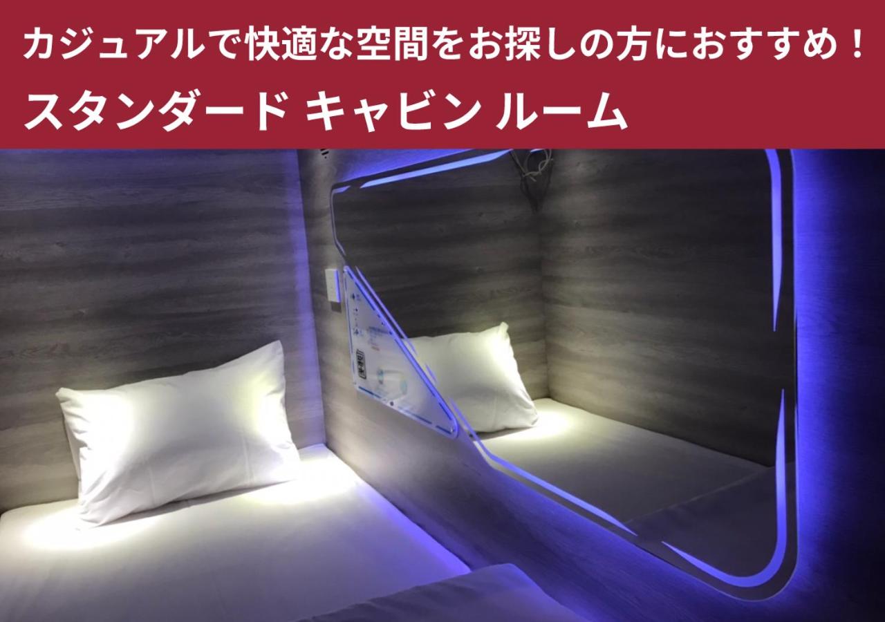 Guest rooms at the capsule hotel are equipped with a shared bathroom and bed linen.