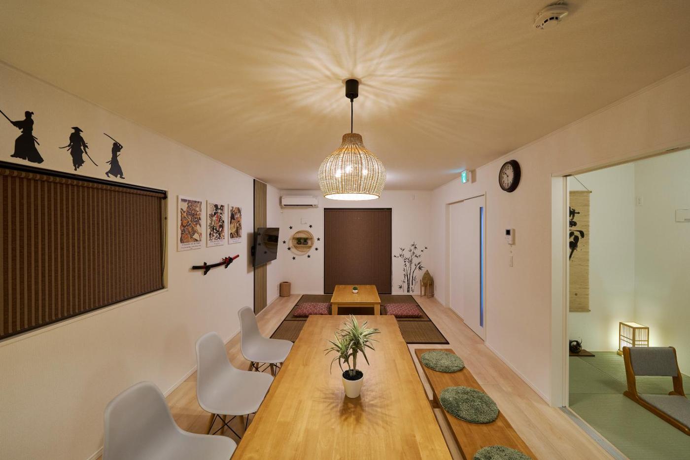Four-Bedroom House. Boasting a private entrance, this air-conditioned holiday home comes with 1 living room, 4 separate bedrooms and 1 bathroom with a bath and a shower. Meals can be prepared in the well-fitted kitchen, which features a refrigerator, kitchenware, a microwave and a toaster. The holiday home features a washing machine, tatami, soundproof walls, a tea and coffee maker, as well as a flat-screen TV with streaming services. The unit has 6 beds and 3 futons.
