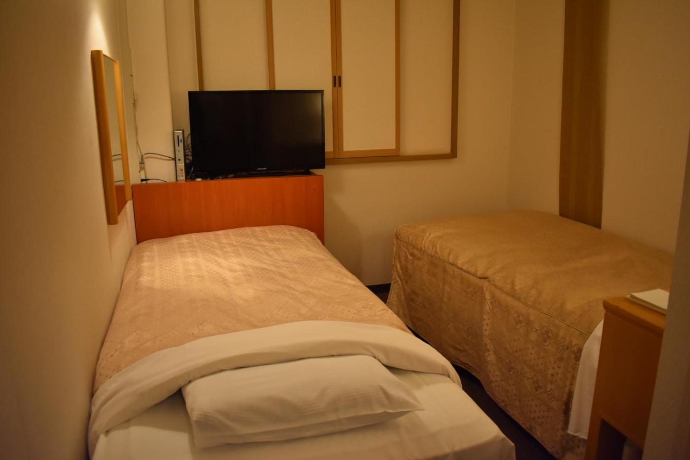 Economy Twin Room - Smoking. The twin room includes a private bathroom, well-fitted with a bath, a shower, a bidet, a hairdryer and slippers. The twin room provides air conditioning, Smartphone, an electric kettle, a carpeted floor and a flat-screen TV. The unit offers 2 beds. ;