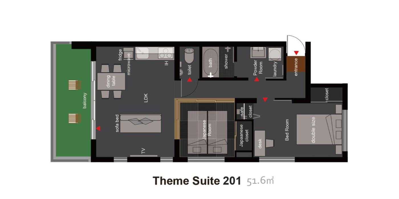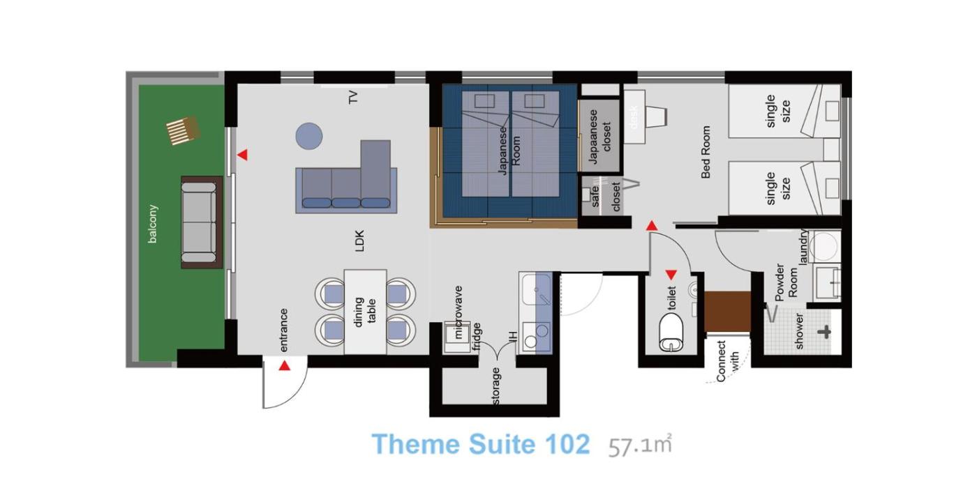 Deluxe Suite with Sea View 101. In the well-equipped kitchen, guests will find a stovetop, a refrigerator, kitchenware and a microwave. The spacious air-conditioned suite offers a flat-screen TV with satellite channels, a washing machine, tatami, a private entrance as well as sea views. The unit has 3 beds and 2 futons. ;